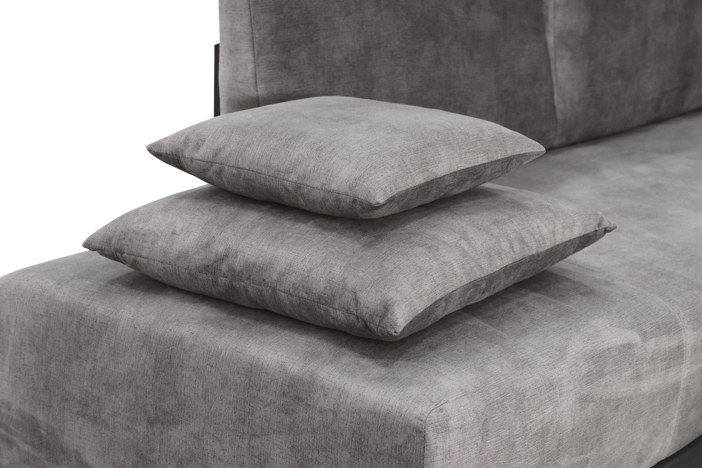 - Угловая часть дивана дополнительно оснащена спинкой и подушками.